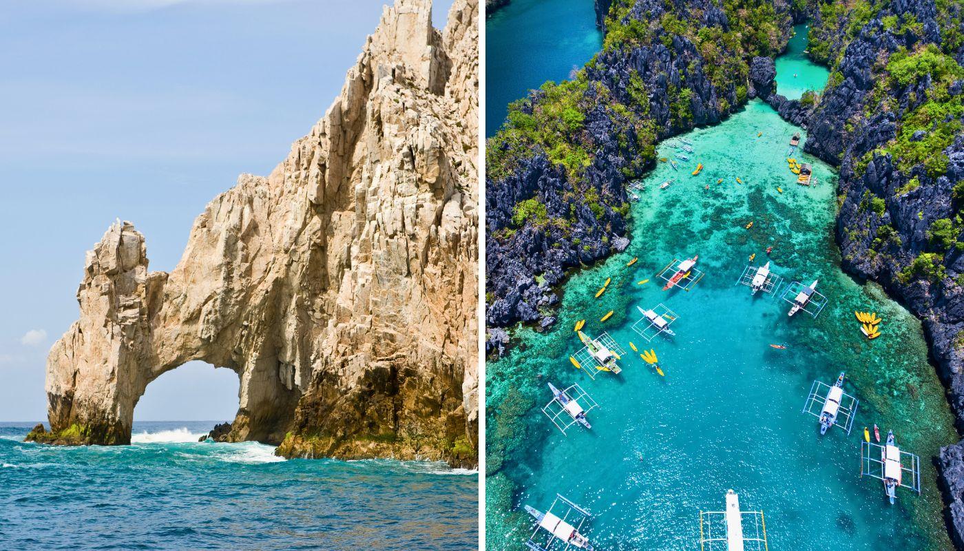 Vuestro viaje ideal es a Los Cabos, en el sur de la península mexicana de Baja California. Se trata de un destino para disfrutar del océano y de las actividades acuáticas. En Cabo de San Lucas podréis practicar esnórquel rodeados de peces subtropicales y formaciones de coral y también relajaros en la espectacular playa del Amor. El atardecer os esperará en el punto exacto en el que se funden el Océano Pacífico con el Mar de Cortés.